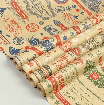 Бумага крафт 70см*10ярд Christmas синий/красный