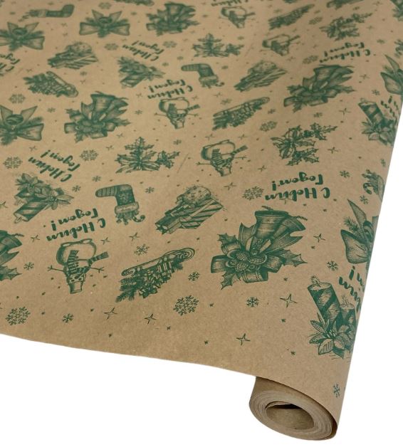 Бумага крафт 70см*10ярд Зимние узоры зеленый