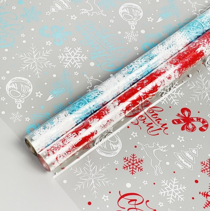 Пленка прозрачная 70см 200гр С Новым Годом красный/белый