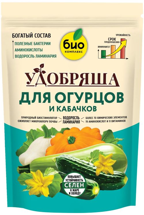 «Удобряша для ОГУРЦОВ И КАБАЧКОВ» - органическое удобрение с аминокислотами и полезными почвенными бактериями.