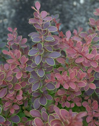 Крупный кустарник 2-3 м высотой с оригинальными листьями. Листья пурпурно-красные с узкой желтой каймой. Цветки желтые. Зимостоек, засухоустойчив.