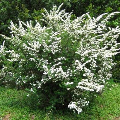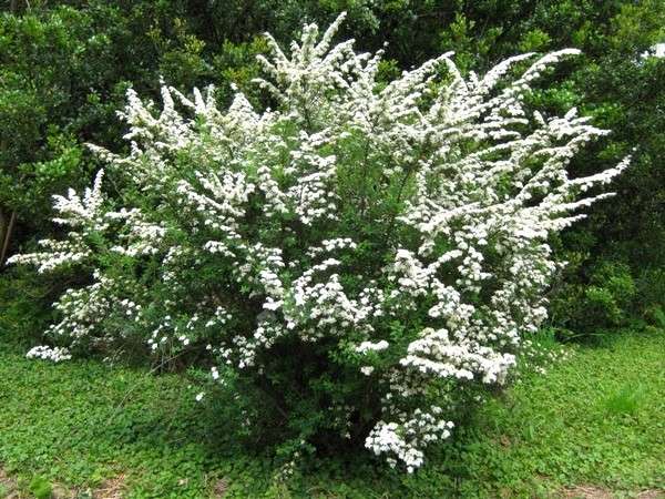 Цветение: Цветет в мае-июне в течение 60 дней. Во время цветения соцветия белого цвета полностью покрывают побеги кустарника. Цветки чисто-белые, до 0,8 см в диаметре. Цветет на побегах прошлого года, в июне.