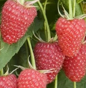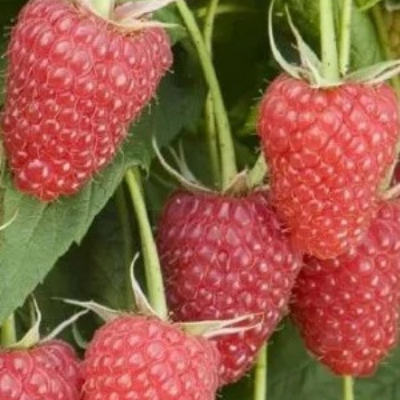 Плоды. Ягоды весом 8 - 14 г. Форма плодов усеченно-коническая, красного цвета с бархатистой поверхностью, вкус десертный, сладкий, аромат «малинный». На ветке до 20 шт. Урожайность высокая (4 – 5 кг с куста).