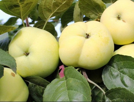 Летнего срока потребления. Дерево среднерослое или высокорослое. Крона широкоовальная, густая. Плодоносит преимущественно на кольчатках. Плоды ниже средней величины, массой 80 г, максимум - 100 г, плоскоокруглой слабоконической формы, слабо или среднеребристые в верхней части, иногда с продольным швом, характерным для Папировки. Кожица тонкая, прочная, сухая, блестящая, зеленовато-беловатая, часто с золотистым загаром. Покровная окраска отсутствует. Мякоть беловатая, мелкозернистая, очень сочная, рыхлая, ароматная. Вкус очень хороший, кисло-сладкий. Зимостойкость очень высокая. Урожайность высокая, регулярная. Скороплодность выше средней. Универсальный.