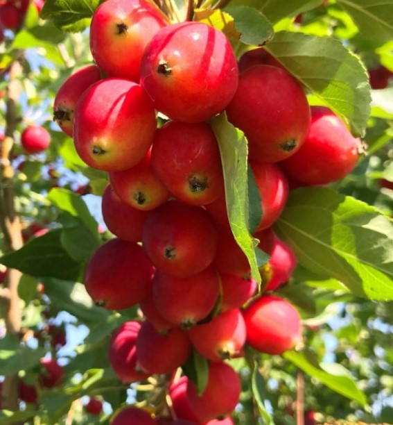 Плоды исключительно мелкие (11-16 г). Поверхность гладкая. Окраска покровная – красная, сплошная, с густым голубоватым налетом. Мякоть кремовая, часто с красными прожилками по линии семенного гнезда, в лежке становится желтой, плотная, сочная, кисло-сладкая, со сливовым ароматом, удовлетворительного вкуса. Созревают в начале сентября, способны храниться до 30 дней, в лежке мякоть разжижается.