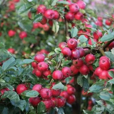 Дерево низкорослое со слабой загущенностью, не требующее формировки кроны. Цветы крупные, яркие, розовые и ароматные. Тёмно-красные, очень вкусные плоды. Вес составляет 35- 45 г. Форма немного вытянутая. Окраска кожицы насыщенная тёмно-красная. Вкус кисловато-сладкий, чувствуется лёгкий привкус терпкости. Скороплодный, начинает приносить плоды на 4-й год после высаживания и происходит ежегодно. Характерна высокая устойчивость к засухе, морозам, заболеваниям..Плоды при созревании не осыпаются. Сорт отличается зимостойкостью и устойчивостью к болезням. При хранении в холодном месте яблоки сохраняются до января. При хранении вкус яблок приобретает медовые нотки. Яблоня этого сорта пользуется популярностью у ландшафтных дизайнеров при оформлении участков.