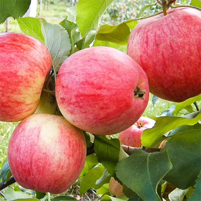 Плоды. Масса светло-зеленого яблока – 120–150 г. Хорошо заметная покровная окраска в виде полосатого красного румянца покрывает примерно половину плода. Яблоко округло-коническое, слегка уплощенное, диаметр увеличивается у основания. Кожица нежная, глянцевая с восковым налетом. Вкус сочной, белой мякоти сладкий, с выраженной кислинкой, присутствует интенсивный конфетный аромат. Урожайность 35-85 кг. яблок с дерева.
