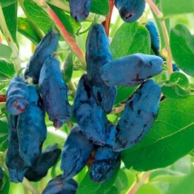 Кусты жимолости мощные и высокорослые – до 1,7-2 м в высоту и 1,4-1,6 м в диаметре. Крона раскидистая, овальной формы, ветви крупные, массивные и прямые, до 50-60 см в длину. Листья большие, темно-зеленого цвета с легким серебристым налетом, матовой поверхностью и пушком. Плоды крупные, продолговато-овальной формы, средняя масса каждого 2-2,5г, длина 4-6 см.