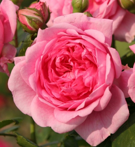 Цветки устойчивы к дождю с сильным ароматом! Сорт устойчив к болезням! Округлые пурпурно-розовые бутоны раскрываются в большие розовые цветы с насыщенным фруктовым ароматом. Они собраны в кисти от 6 до 8 цветов в каждой. Куст ветвистый вертикальный, высотой 250 см и шириной 100 см. Листва среднего размера, темно-зеленая, блестящая, устойчивая к болезням.