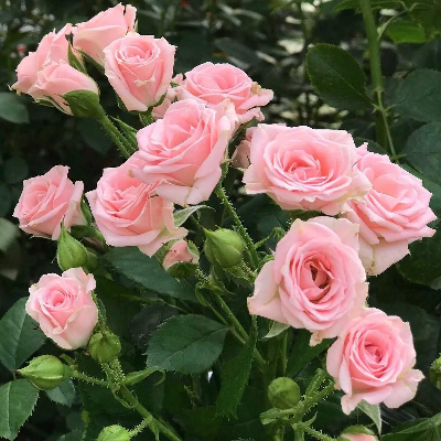 Сорт устойчив к мучнистой росе! Цветки устойчивы к дождю! Сорт обильноцветущий! Эта спрей-роза изначально предназначалась для выращивания в теплицах. Огромные, по количеству, соцветия-букеты светло-розового, а в прохладную погоду более насыщенного розового цвета, зацветают одними из первых и цветут до самой осени. Очень интересная роза! Куст высотой 50-60 см, шириной 30-50 см. Сорт устойчив к мучнистой росе. Цветки устойчивы к дождю. Сорт обильноцветущий.