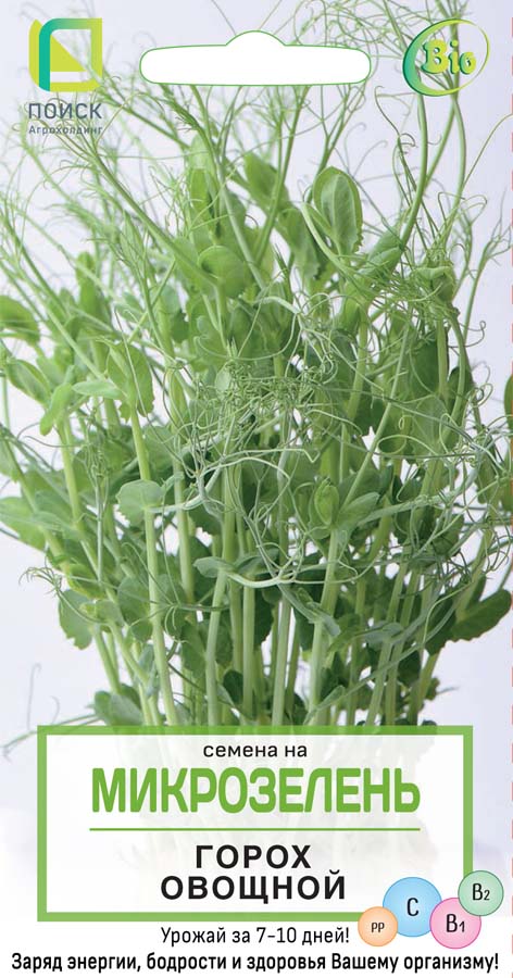 Нежная сочная микрозелень имеет вкус молодого горошка с легким оттенком ореха. В пищу используются листья, усики, стебли, как ингредиенты для салатов, так и в отваренной форме в овощных супах и в составе рагу. Ростки гороха содержат фосфор, витамины группы В, Е, С, РР, К, протеины. Способствуют снижению сахара в крови, выведению токсинов, росту и регенерации клеток, обладают противоопухолевой активностью.