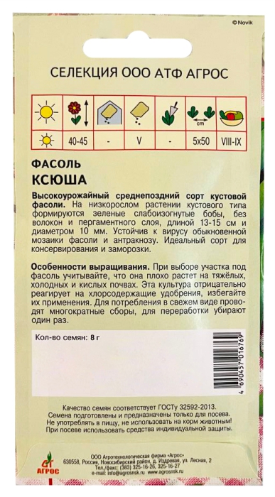 Фасоль кустовая Ксюша 8г /Агрос