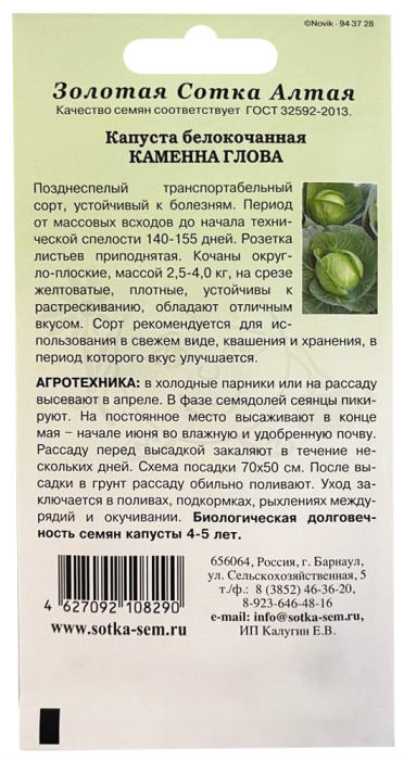 Капуста белокоч. Каменна глова позднесп. 0,3г /ЗС