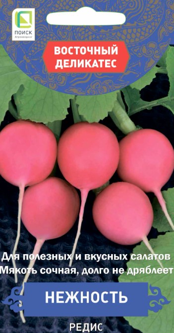 Корнеплоды массой 15-20 г, округлой формы, розового цвета с гладкой поверхностью и тонкой кожицей.