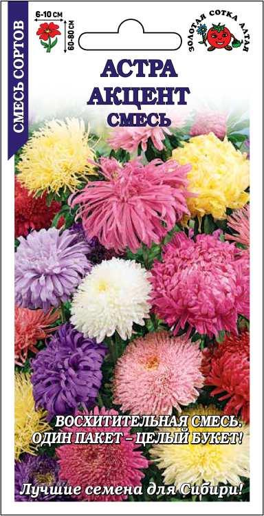 Великолепная смесь астр различных сортотипов, специально подобранная для оформления всех видов цветников. Крупные махровые соцветия поражают разнообразием форм и радуют многообразием ярких оттенков. Сорта характеризуются обильным и продолжительным цветением, подходят для посадки в вазоны и балконные ящики, используются для срезки в букеты.