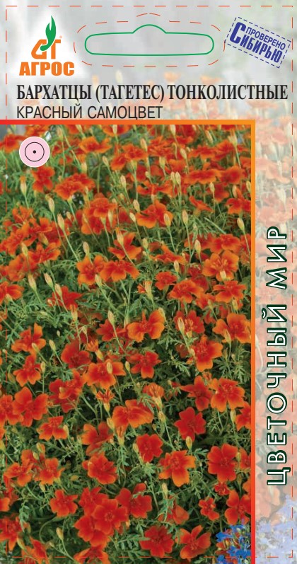 Бархатцы (Тагетес) Красный Самоцвет тонколист. 0,1г /Агрос