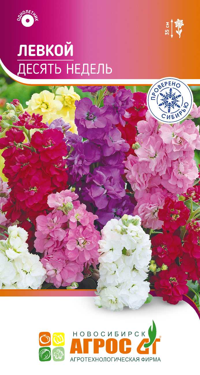 Однолетнее травянистое растение, низкорослое растение. Срок цветения через 10 недель после всходов. Цветки махровые, собраны в прочные кистевидные соцветия на концах побегов. Обильное, длительное цветение, яркая окраска цветков а также сильный, приятный аромат делают это растение очень популярным. Левкои холодостойки, любят светлые места и питательные, в меру влажные, некислые почвы. Не выносят переувлажнения и свежего навоза. До цветения раз в 10-14 дней подкармливают комплексным минеральным удобрением. Семена на рассаду высевают в марте-апреле. Всходы появляются через 7-14 дней при оптимальной температуре 18-22°С. При избыточном поливе могут поражаться черной ножкой. Используются для бордюров, рабаток, ковровых клумб, им украшают балконы, выращивают в контейнерах, вазонах, горшках. Соцветия махровых левкоев, срезанных в стадии распускания на 2/3, до 10 дней сохраняют свежесть в ароматном букете.