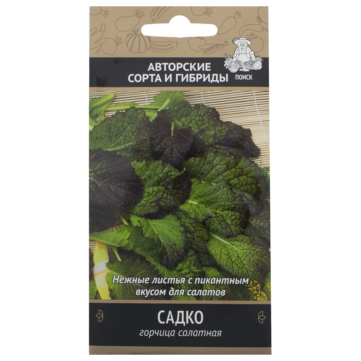 Среднеспелый, холодостойкий сорт с быстрым нарастанием вегетативной массы. Период от всходов до сбора урожая  22-25 дней. Листья крупные, цельные, тёмно-зелёные, с интенсивным антоциановым оттенком, со слабоострым привкусом, напоминающим столовую горчицу. Масса растения 60-70 г.  Сорт отличается высокой облиственностью и устойчивостью к преждевременному стеблеванию. Растения дают нежную витаминную продукцию с ранней весны до поздней осени, используются в свежем виде в салатах.