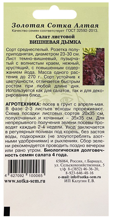 Салат листовой Вишневая дымка 0,3г /ЗС