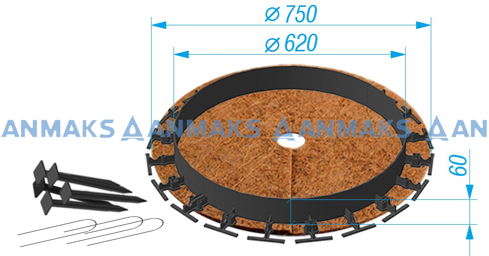 Кольцо-бордюр надежно защищает кокосовое волокно от повреждения газонокосилкой, значительно увеличивая срок службы полотна.