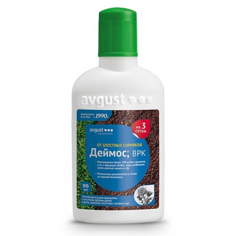 Деймос для газона имеет высокую скорость проникновения во все части однолетних и многолетних двудольных сорняков, моментально останавливает их рост и вызывает гибель растений в течение трёх недель. Попадая в почву, препарат разлагается за период вегетации.