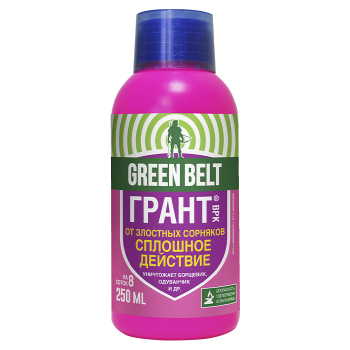 Green Belt Грант – гербицид общеистребляющего действия для борьбы с вредной растительностью. Средство уничтожает более 150 видов сорняков, в том числе трудноискоренимые, сохраняет своё действие в течение 3-4 недель после применения. Однократного внесения достаточно на весь период вегетации культуры. Скорость воздействия: действие препарата проявляется в течение часа после обработки.