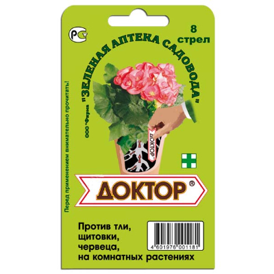 Средство от вредителей «Доктор» — препарат системного действия для эффективной борьбы с вредителями комнатных и балконных растений. Уничтожает таких насекомых как тля, червец, белокрылка, щитовка, трипс.