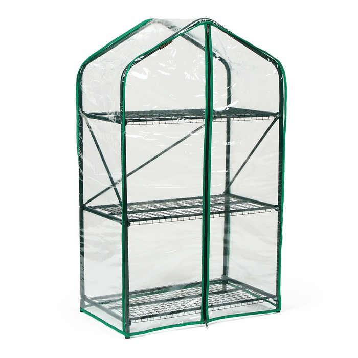 Парник имеет прозрачный ПВХ чехол на молнии, позволяя регулировать микроклимат.