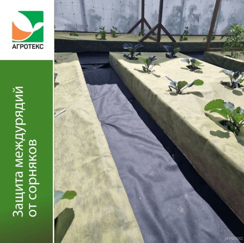 Применяется в теплицах и открытом грунте для мульчирования пространства между грядками или рядами культурных растений.